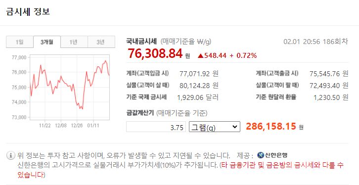또한 금 1돈(3.75g)의 가격도 바로 확인할 수 있어서 그날그날 금 시세를 편하게 알아볼 수 있습니다.