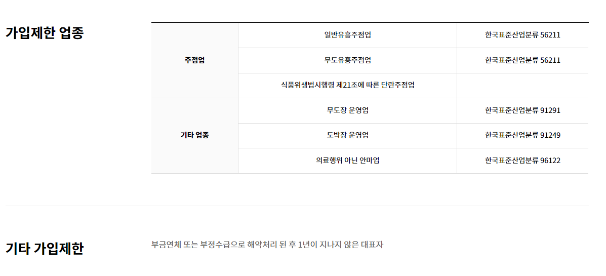 노란우산공제는 유흥주점, 단란주점업 등 주점업의 경우엔 가입이 불가하며, 그 외 무도장 등을 운영할 경우 가입이 제한된다고 하니 참고해주세요