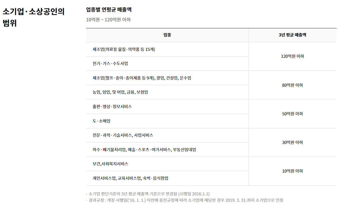 그렇다면 소상공인, 소기업의 범위는 어떻게 될까요?