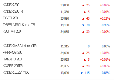 (ex) KODEX레버리지, KBSTAR국고채3년선물인버스 등